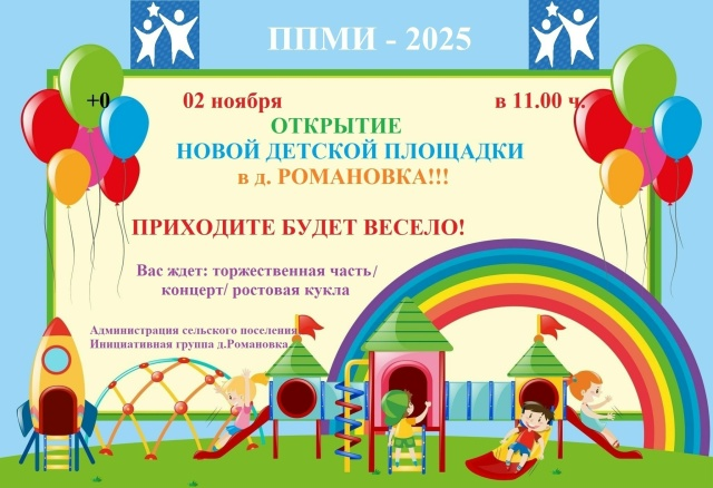 Мальчишки и девчонки, а также их родители, приглашаем вас на открытие детской площадки в д.Романовка созданную в рамках программы поддержки местных инициатив ППМИ2025